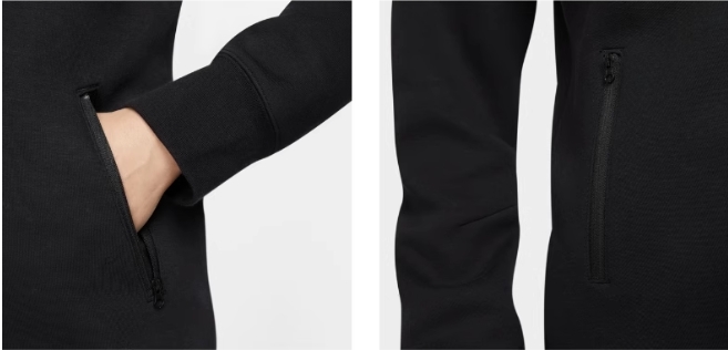 Bluza posiada długie rękawy, zapięcie na zamek błyskawiczny i panelowy kaptur zapewniający indywidualne okrycie, a elastyczne mankiety oferują wygodne i bezpieczne dopasowanie. Boczne kieszenie pomieszczą niezbędne drobiazgi. Czarną kolorystykę dopełnia charakterystyczny branding Nike.
