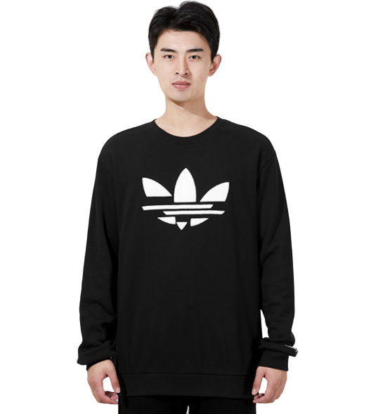 Bluza posiada standardowy, luźny krój, zaokrąglony dekolt oraz duże logo Adidas na piersi. Dół oraz mankiety rękawów zostały wykończone ściągaczami dla lepszego dopasowania.
