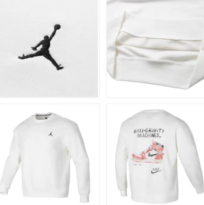 Bluza posiada ściągacze w mankietach rękawów oraz na dole bluzy dzięki czemu optymalnie dopasuje się do Twojej sylwetki. Na klatce piersiowej znajduje się sylwetka MJ’a, a na plecach imitacja malowanego buta z serii Air Jordan.
