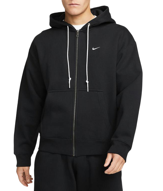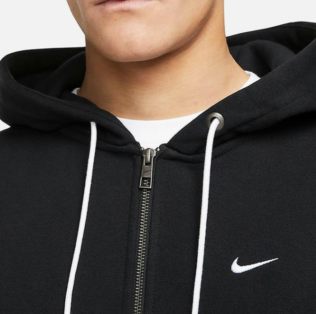 Kaptur ze ściągaczem daje dodatkową osłonę i indywidualne dopasowanie.Czarna bluza ma białe logo Nike z przodu oraz funkcjonalny zamek na całej długości.