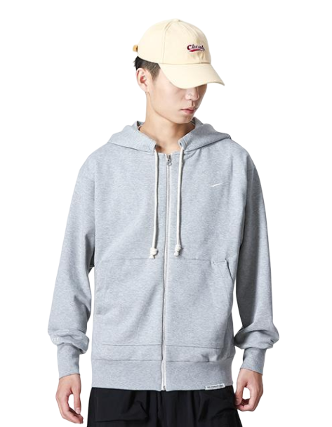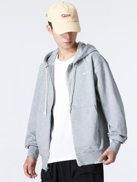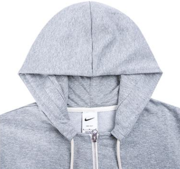 Kaptur ze ściągaczem daje dodatkową osłonę i indywidualne dopasowanie. Szara bluza ma białe logo Nike z przodu oraz funkcjonalny zamek na całej długości.