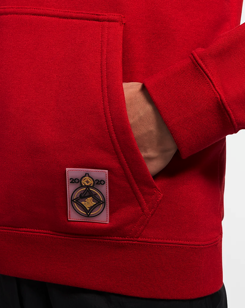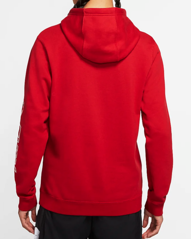 Kaptur ze ściągaczem ochroni Cię przed zimnem i wiatrem, a kieszeń typu kangur znakomicie sprawdzi się przy przenoszeniu drobnych przedmiotów. Czerwoną kolorystykę uzupełnia logowanie na piersi i rękawie.
