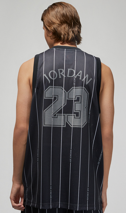 Koszulka posiada charakterystyczny siateczkowy, przewiewny materiał oraz logowania – z przodu sylwetka MJ’a, natomiast z tyłu Jordan z numerem 23.