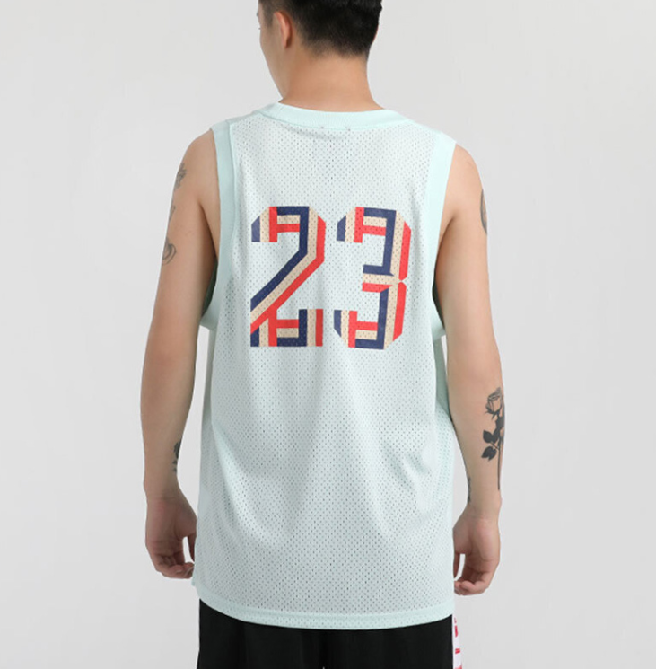 Koszulka posiada charakterystyczny siateczkowy, przewiewny materiał oraz logowania – z przodu sylwetka MJ’a, natomiast z tyłu numer 23.