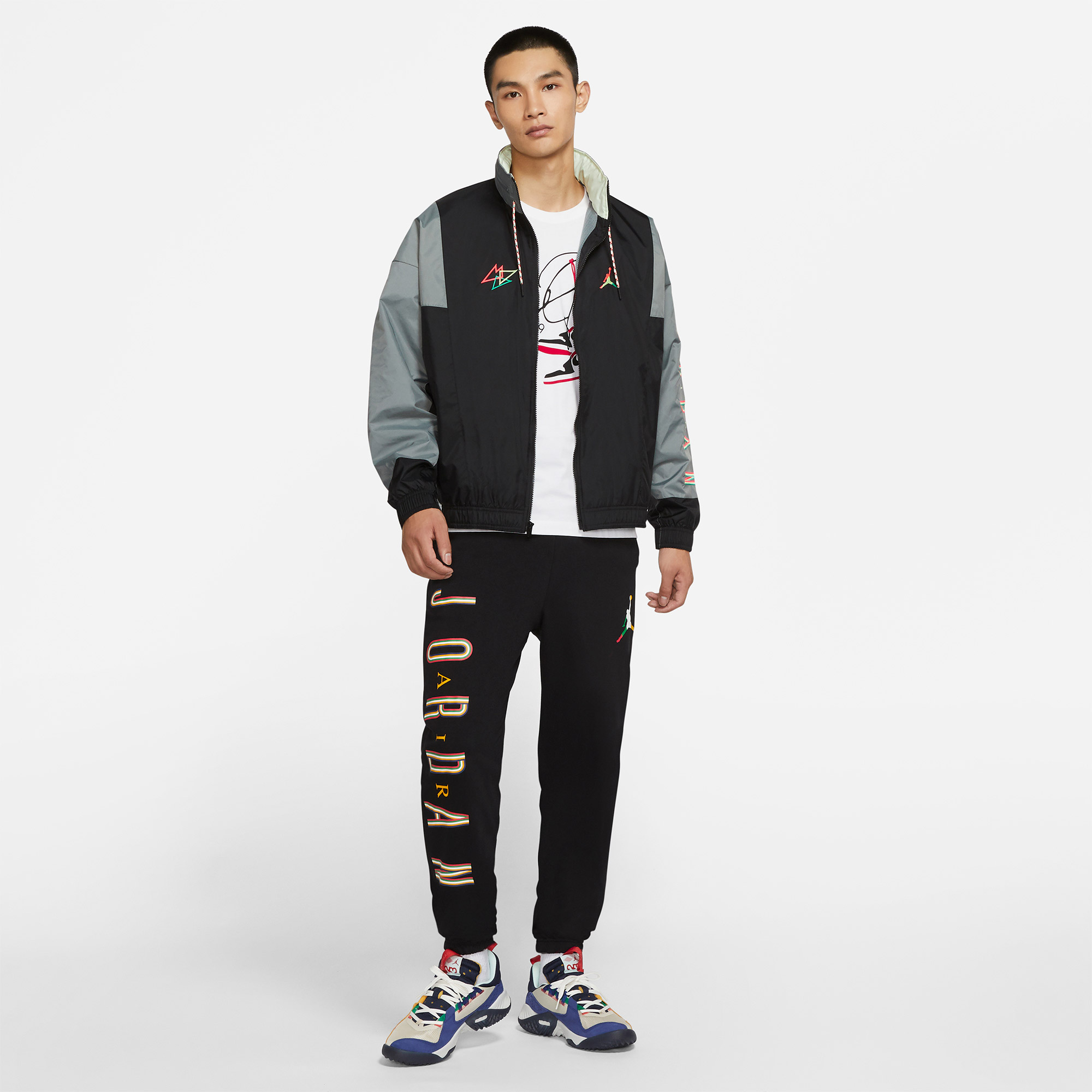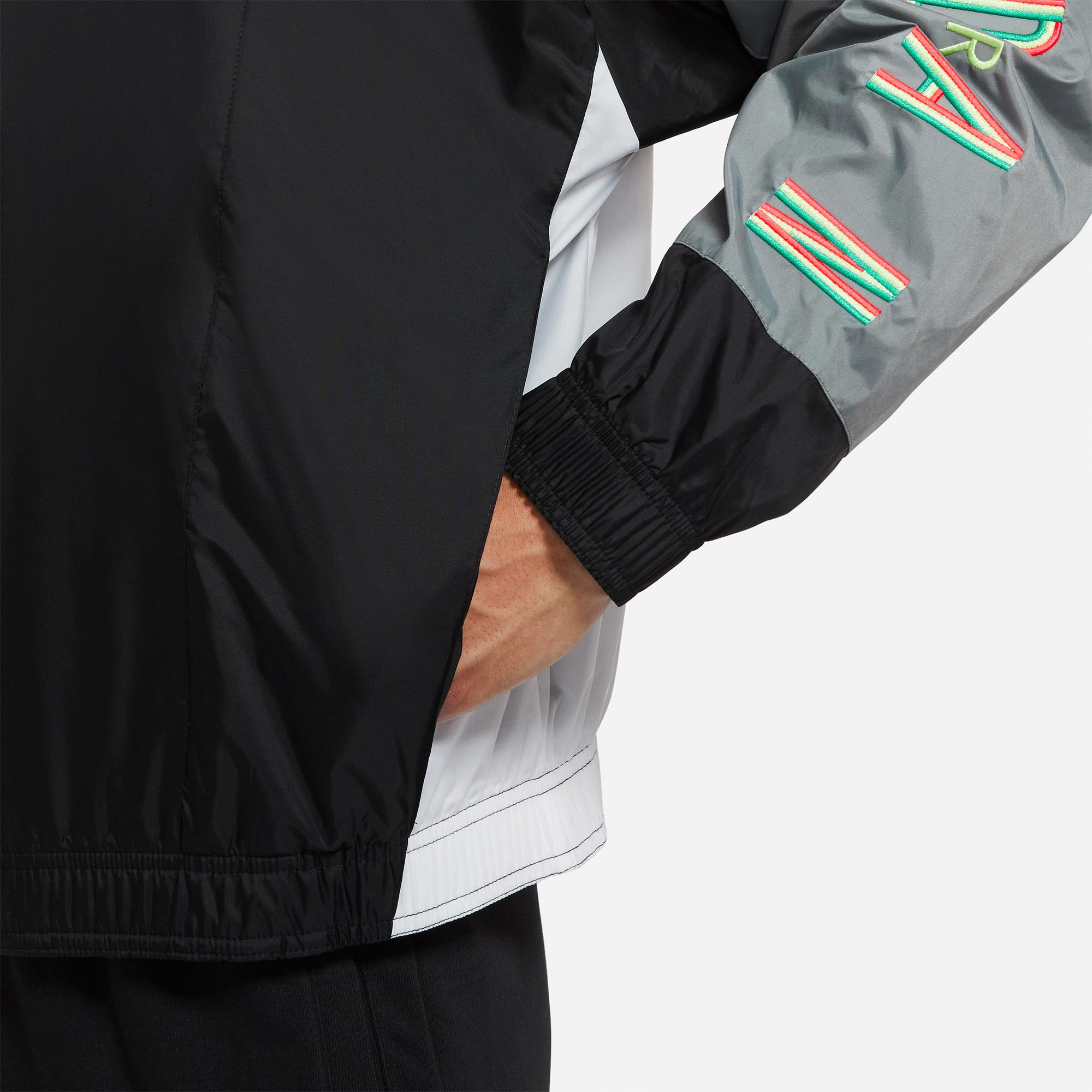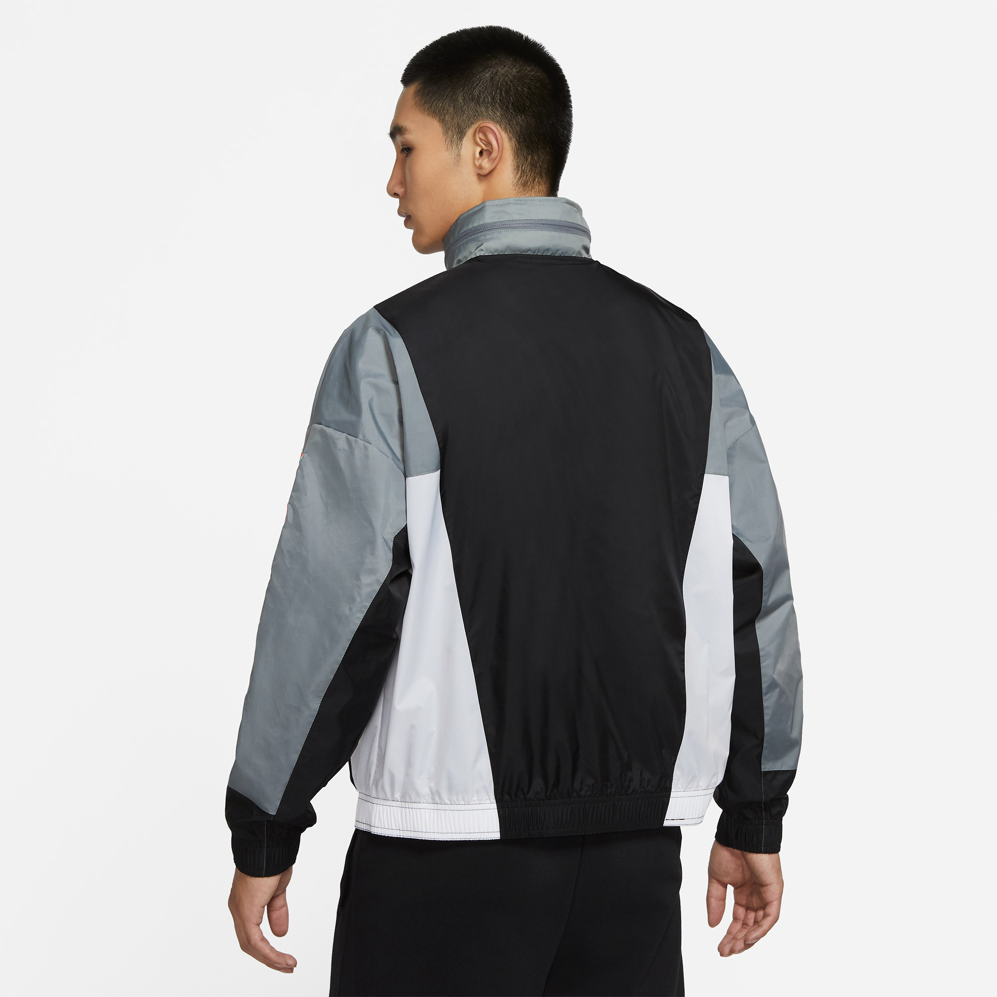 Kurtka Nike Air Jordan reprezentuje klasyczny styl marki. To lekki i wygodny model zapewniający osłonę w przejściowym okresie roku. Ma luźny krój, podszewkę i regulowany kaptur, dzięki czemu jest niezwykle wygodny. Wyróżniają go wyraziste kontrastowe kolory i sylwetkę MJ’a na lewej piersi. Kurtka posiada dwie kieszenie boczne zapinane na zamek błyskawiczny.