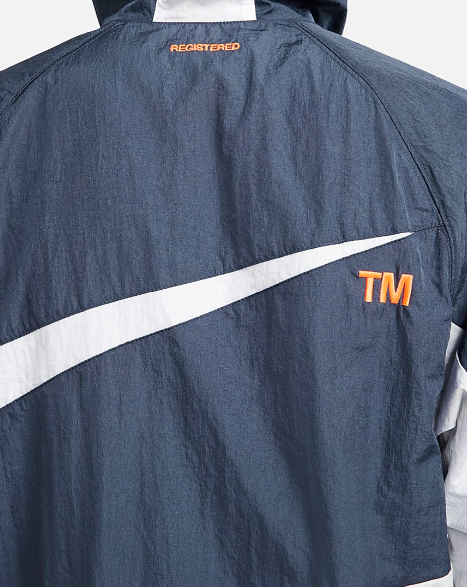 Kurtka Nike Sportswear Sportswear Swoosh to nowa odsłona pierwszego modelu kurtki przeciwwiatrowej do biegania, wzbogacona o lekki materiał wykonany z materiałów z recyklingu. Detale zaczerpnięte z oryginalnej wersji odpowiadają za klasyczny styl Nike.