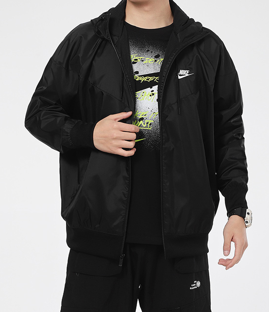 Ten wszechstronny rozpinany model jest wykonany w 100% z materiału pochodzącego z recyklingu. Siateczkowa podszewka, wstawki ze ściągacza i sznurki są wykonane z poliestru z recyklingu. Kultowy wzór w kształcie szewronu na klatce piersiowej i kontrastowe detale nawiązują do klasycznego stylu oryginalnej kurtki Windrunner.