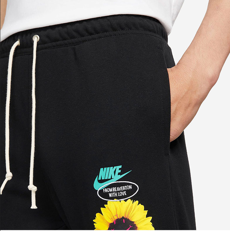 Klasyczne spodnie od marki Nike z charakterystycznym kwiatowym motywem to idealna propozycja do codziennych stylizacji. Wykonane z francuskiej tkaniny frotte oraz luźny krój zapewnią komfort użytkowania.